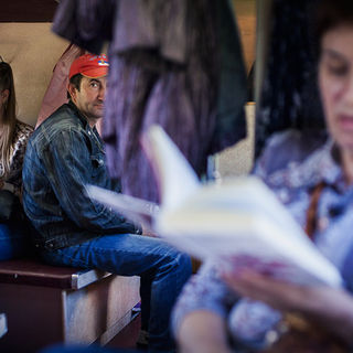 A shared second-class carriage of an old Soviet train is the cheapest way to get from Riga to Moscow. The trip lasts one day and one night, but to make the travel cheaper, the company sells 45 tickets for 28 full sleeping places. So, at night, these strangers have to find an agreement and a compromise in order to find a way to sleep at least for a few hours. People sleep on hard shelves without blankets or pillows, and due to the lack of space, some of them have to sleep on the shelf for things.